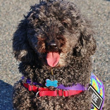 Josie (she/her) is an 8 year old Labradoodle with a heart full of compassion and a wagging tail ready to spread joy wherever she goes. As a certified pet therapy dog, through Windwalker Humane Coalition, Josie is dedicated to making a positive difference in the lives of those she meets.
